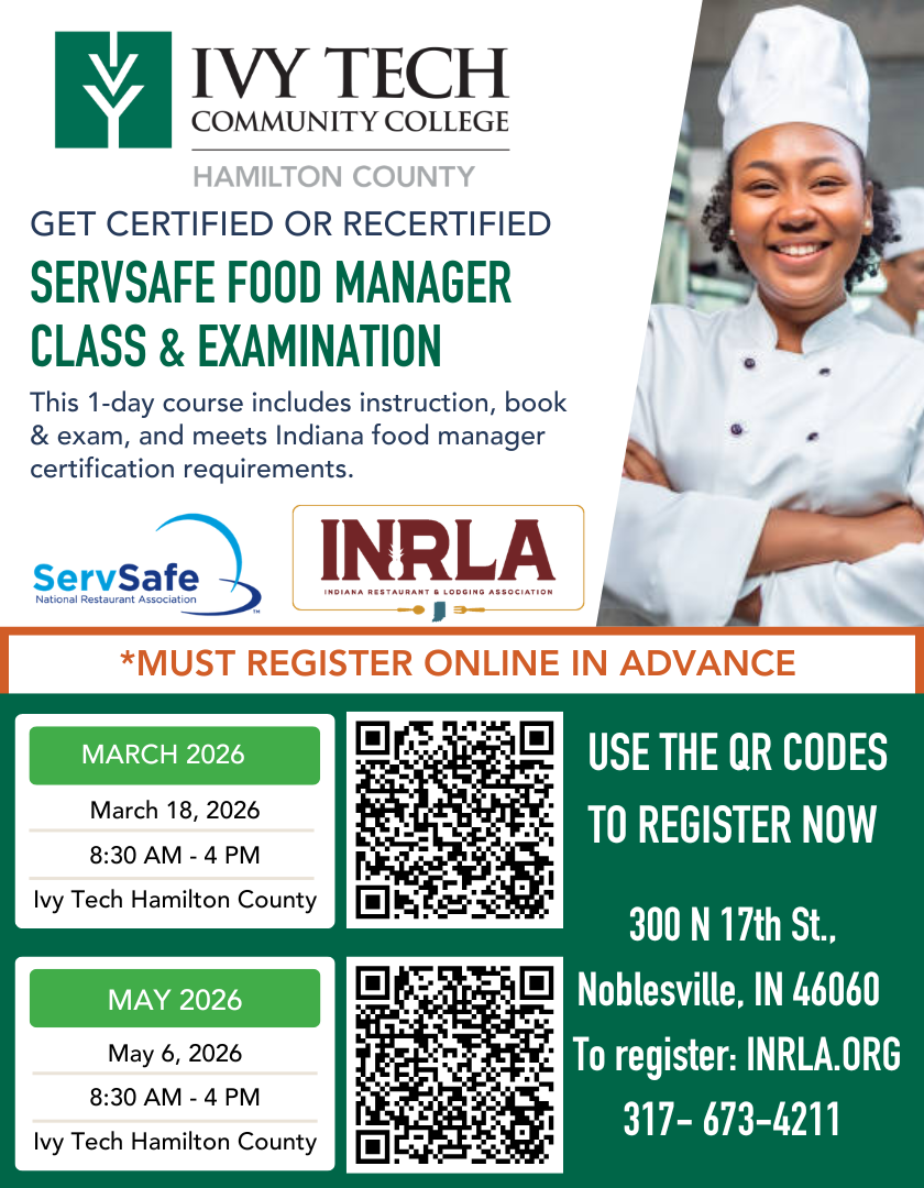 ServSafe is a nationally recognized food safety program developed by the food service industry to help prevent potential foodborne illnesses. ServSafe is the most universally recognized and accepted course by state, county, and municipal health authorities that require sanitation training for food service managers. The Food Manager Certification examination is one of only four exams that meet the new Indiana certification requirements. Ivy Tech offers ServSafe training by certified instructors.