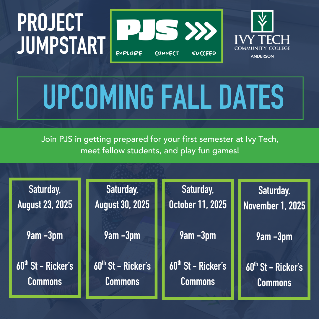 Anderson hosts in-person new student orientation sessions called Project Jumpstart or PJS, which are required for all students to take prior to the first day of classes. This will set you up for success as you begin your time at Ivy Tech Anderson!