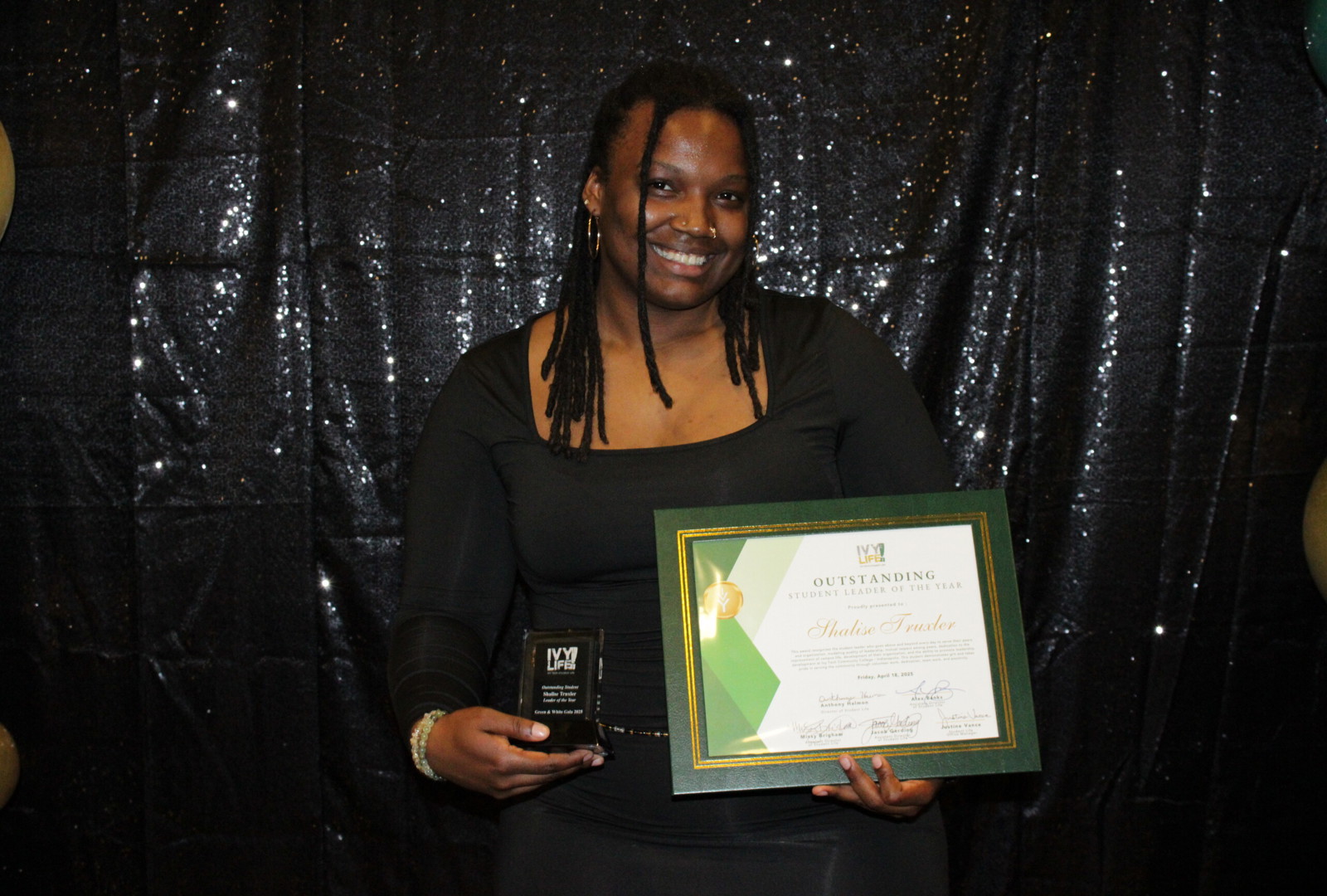 Her leadership was recognized at the 2025 Green and White Gala, where she was named Outstanding Leader of the Year.