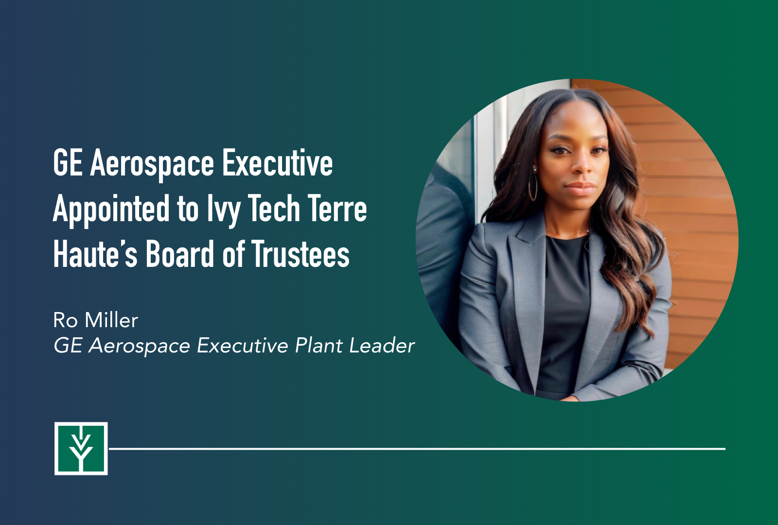 TERRE HAUTE, Ind. Ivy Tech Community College Terre Haute is pleased to announce the appointment of Robertha “Ro” Miller, GE Aerospace Executive Plant Leader, to the Campus Board of Trustees. With more than 20 years of experience across the global supply chain and industrial sectors, Miller brings a strong workforce-focused perspective and a deep understanding of industry needs that align closely with Ivy Tech’s mission of preparing students for high-demand careers.