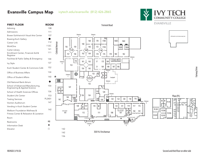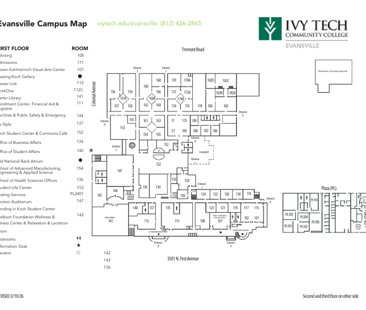 Campus Map 2026 The Ivy Tech Evansville campus currently consists of three buildings at the main campus on First Avenue in Evansville.