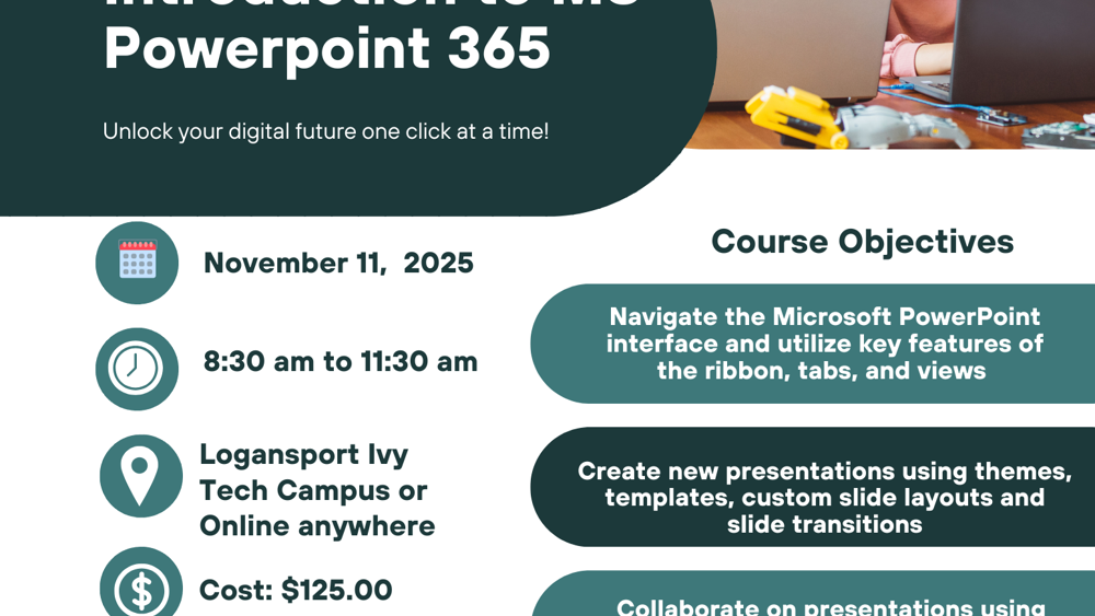 In this Level 1 PowerPoint class, students will learn basic skills including: