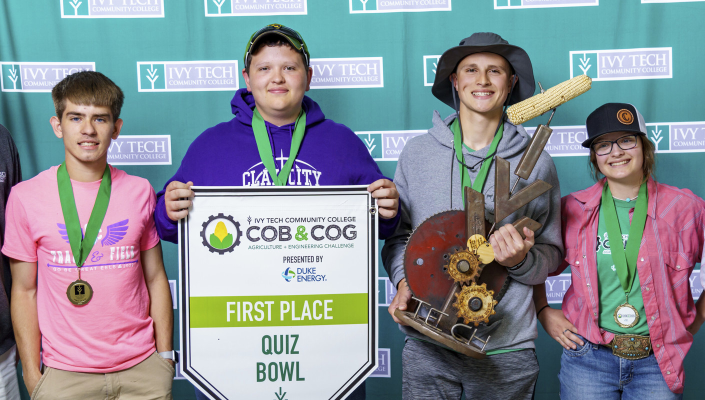 Teams of three students from each school compete against each other in a contest that features questions from the areas of engineering, agriculture, and general knowledge. The first round is double elimination in the morning. The final rounds are single elimination after lunch. The winner of the Quiz Bowl wins the Cob & Cog traveling trophy.